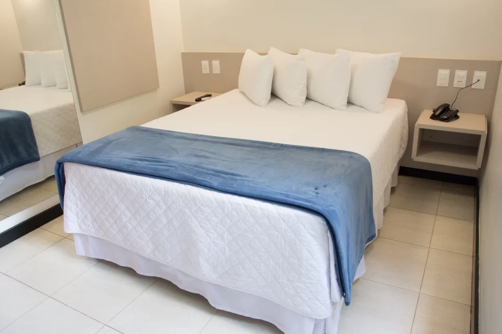 O apartamento oferece um ambiente mais amplo com TV 40”, internet wifi grátis, janela com veneziana elétrica, cofre digital, secador de cabelo, frigobar, chuveiro com aquecimento solar.